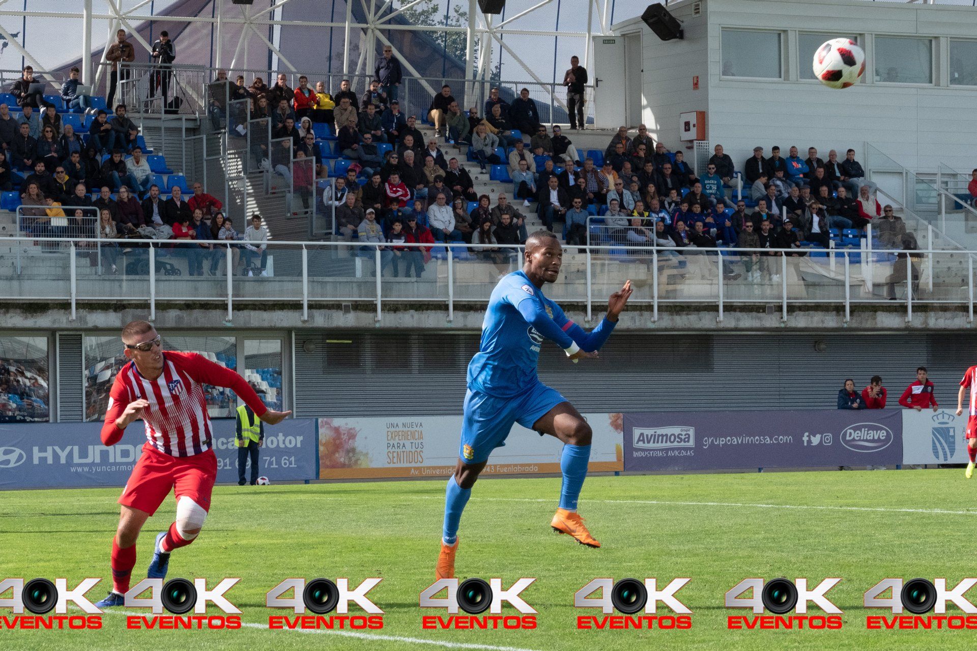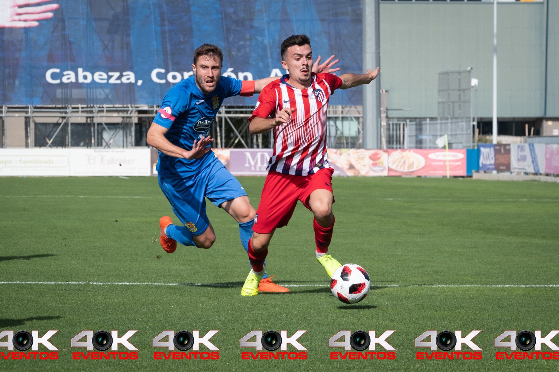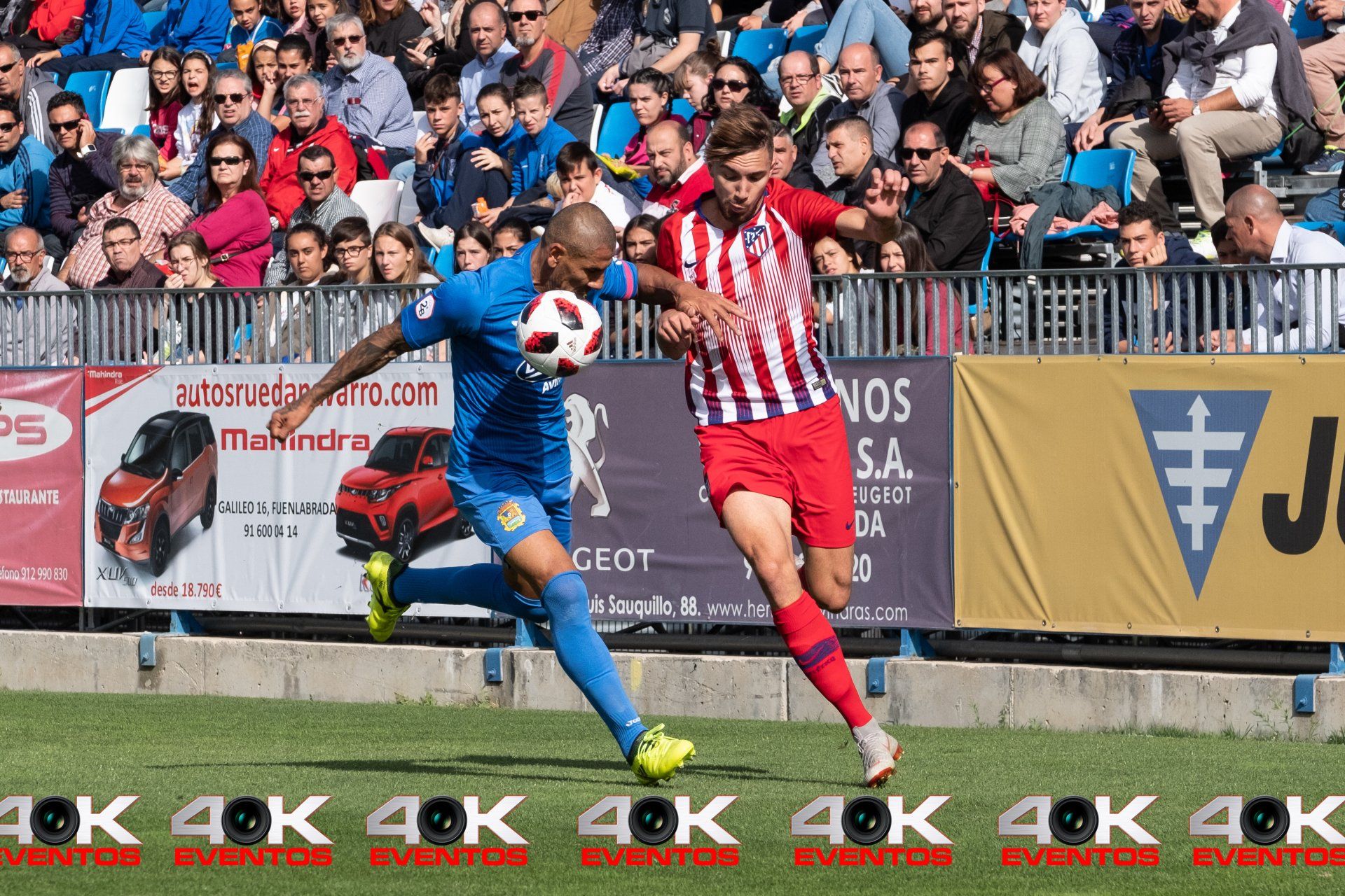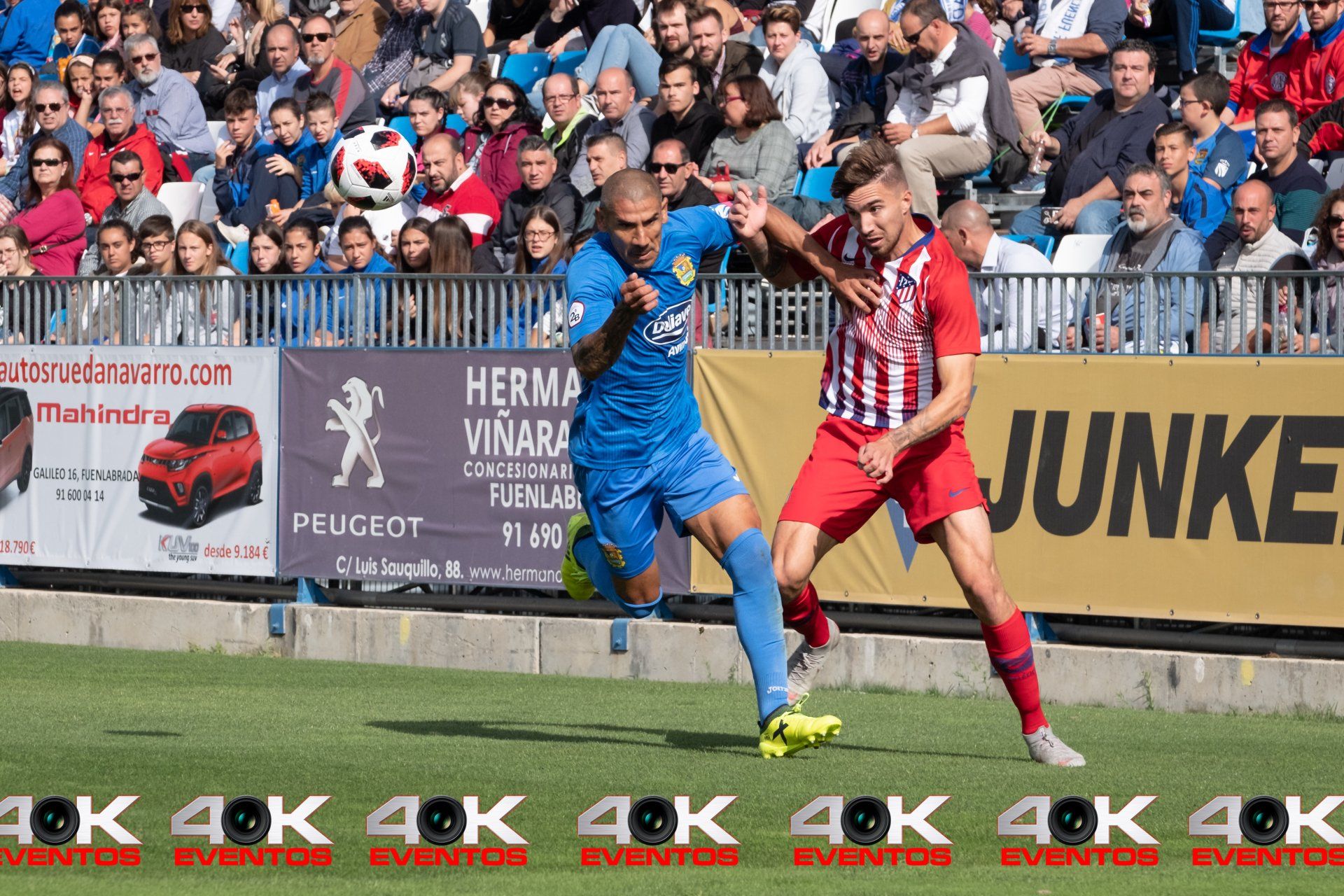 El partido empezó con una primera parte de pocas ocasiones, pero de muchas disputas. Se contó una oportunidad clara por bando. La del Atleti en un centro que se estrelló en el palo y la de la del Fuenla en un centro medido de Iribas que remató Borja Lázaro y paró San Román. El Fuenla vivía de la seguridad atrás. Cata volvió en versión imperial y Glauder entró en el once para jugar con seriedad y solvencia. Formaron un muro que se fortificaba con Biel atrás y Clavería, Cristóbal y Randy corriendo todo por delante para ayudar a Souley e Iribas en los laterales. El partido dormía plácido y cuadraba con los pocos sobresaltos de la semana, pero cuando se acercaba el descanso se dispararon los acontecimientos y, como sucede últimamente, lo hicieron contra los intereses del Fuenlabrada. Sucesos esotéricos que no minan la moral azul. Esta vez el caído en combate fue Javi Gómez, que acabó con la nariz fracturada tras un codazo de un rival. Llegó el descanso sin mucho más en el fútbol y con la grada pendiente del joven extremo.
