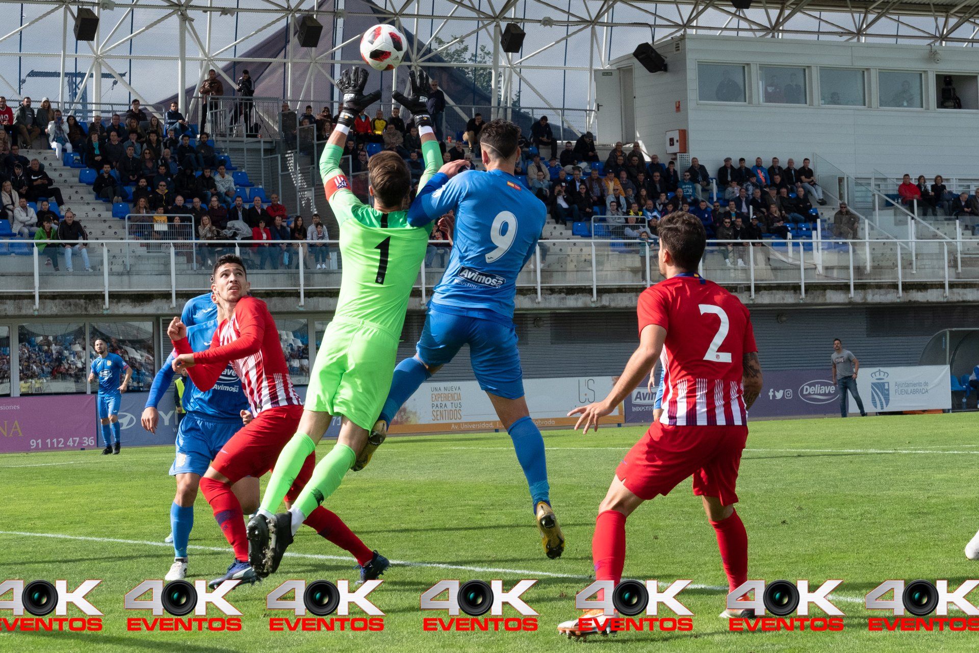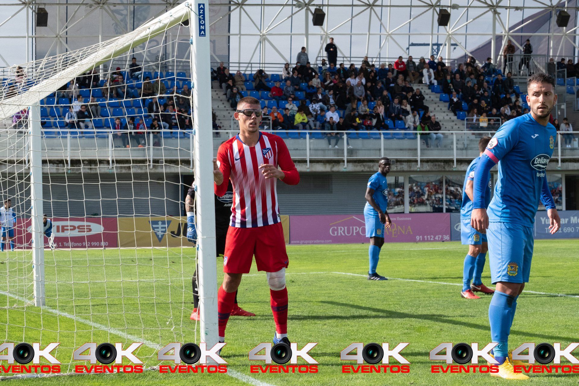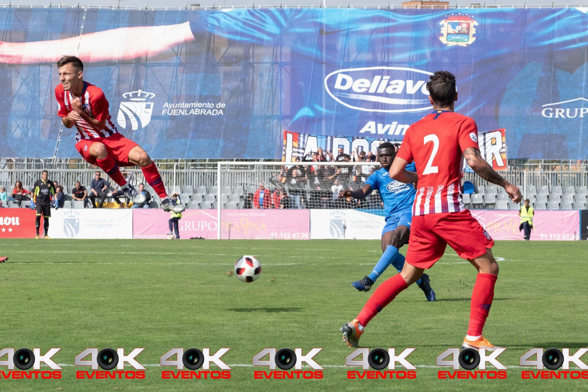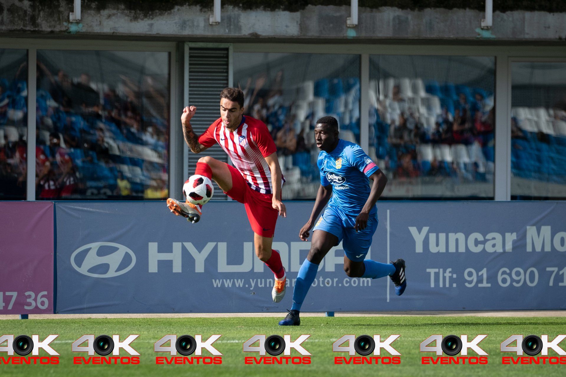 El partido empezó con una primera parte de pocas ocasiones, pero de muchas disputas. Se contó una oportunidad clara por bando. La del Atleti en un centro que se estrelló en el palo y la de la del Fuenla en un centro medido de Iribas que remató Borja Lázaro y paró San Román. El Fuenla vivía de la seguridad atrás. Cata volvió en versión imperial y Glauder entró en el once para jugar con seriedad y solvencia. Formaron un muro que se fortificaba con Biel atrás y Clavería, Cristóbal y Randy corriendo todo por delante para ayudar a Souley e Iribas en los laterales. El partido dormía plácido y cuadraba con los pocos sobresaltos de la semana, pero cuando se acercaba el descanso se dispararon los acontecimientos y, como sucede últimamente, lo hicieron contra los intereses del Fuenlabrada. Sucesos esotéricos que no minan la moral azul. Esta vez el caído en combate fue Javi Gómez, que acabó con la nariz fracturada tras un codazo de un rival. Llegó el descanso sin mucho más en el fútbol y con la grada pendiente del joven extremo.