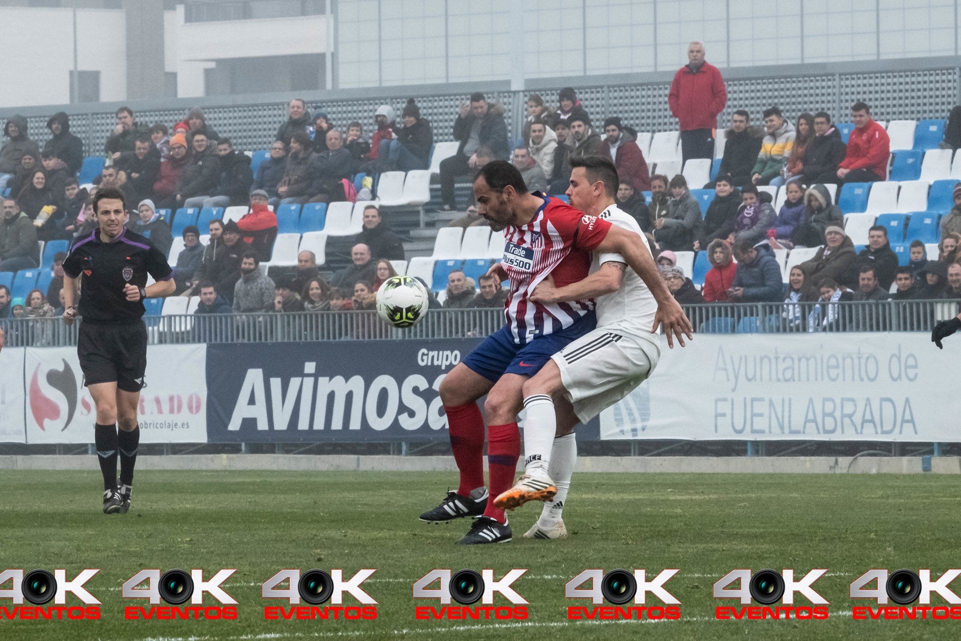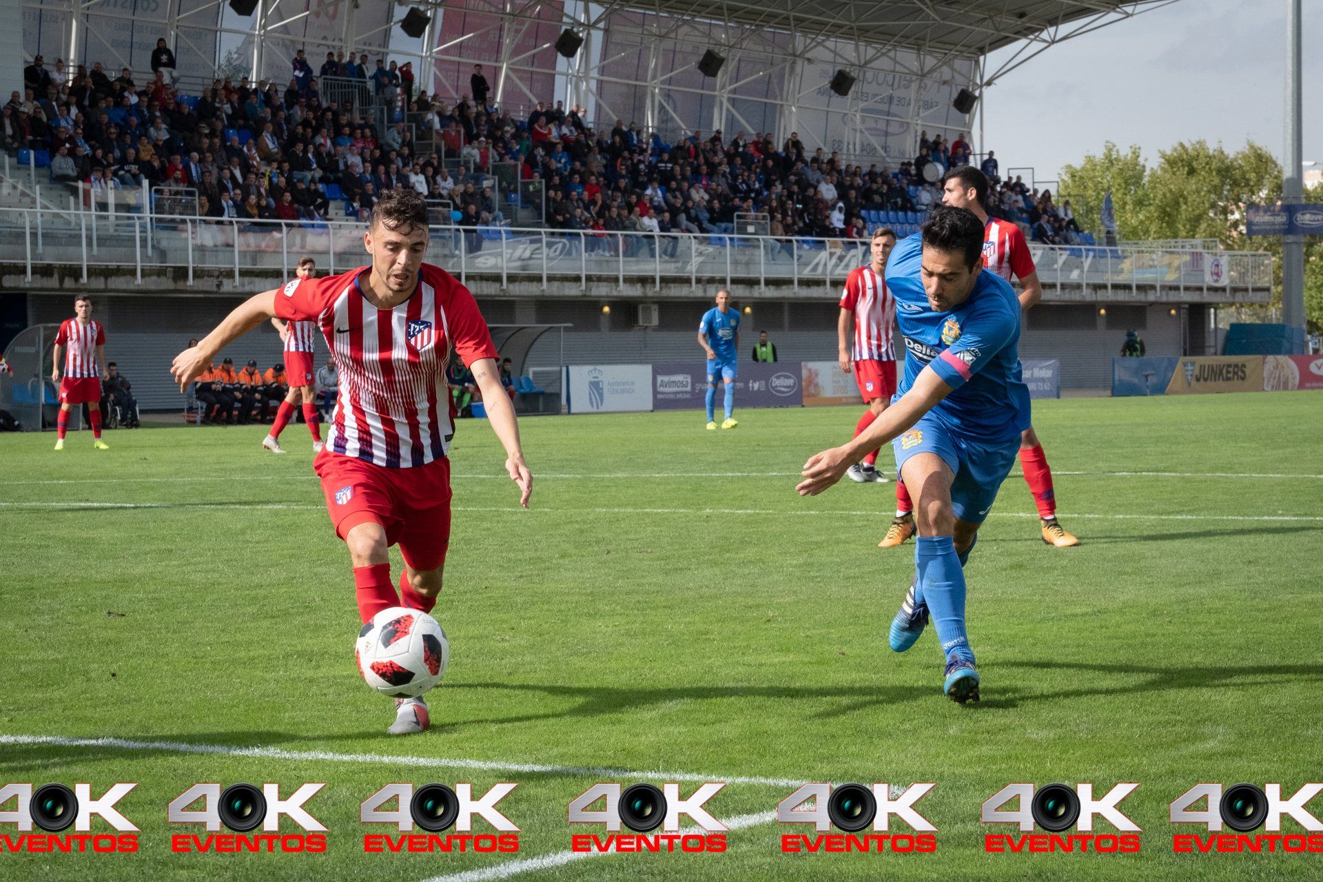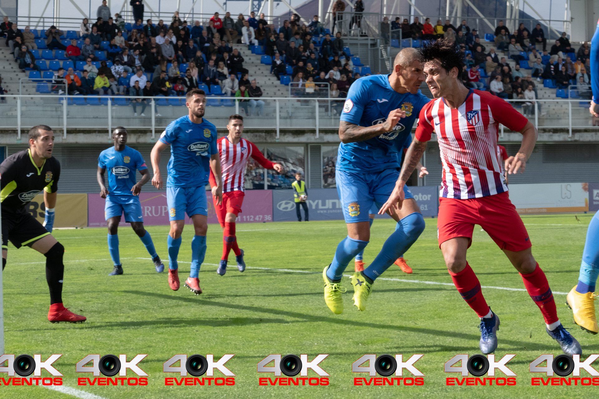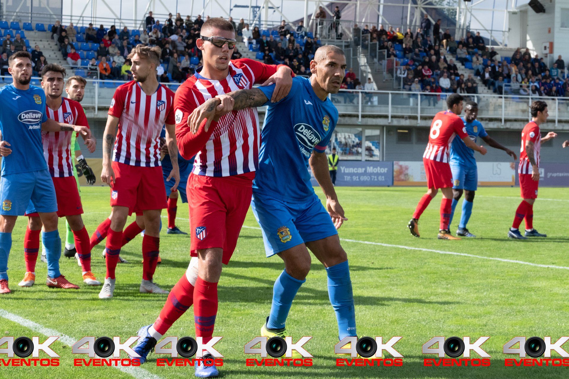 El partido empezó con una primera parte de pocas ocasiones, pero de muchas disputas. Se contó una oportunidad clara por bando. La del Atleti en un centro que se estrelló en el palo y la de la del Fuenla en un centro medido de Iribas que remató Borja Lázaro y paró San Román. El Fuenla vivía de la seguridad atrás. Cata volvió en versión imperial y Glauder entró en el once para jugar con seriedad y solvencia. Formaron un muro que se fortificaba con Biel atrás y Clavería, Cristóbal y Randy corriendo todo por delante para ayudar a Souley e Iribas en los laterales. El partido dormía plácido y cuadraba con los pocos sobresaltos de la semana, pero cuando se acercaba el descanso se dispararon los acontecimientos y, como sucede últimamente, lo hicieron contra los intereses del Fuenlabrada. Sucesos esotéricos que no minan la moral azul. Esta vez el caído en combate fue Javi Gómez, que acabó con la nariz fracturada tras un codazo de un rival. Llegó el descanso sin mucho más en el fútbol y con la grada pendiente del joven extremo.