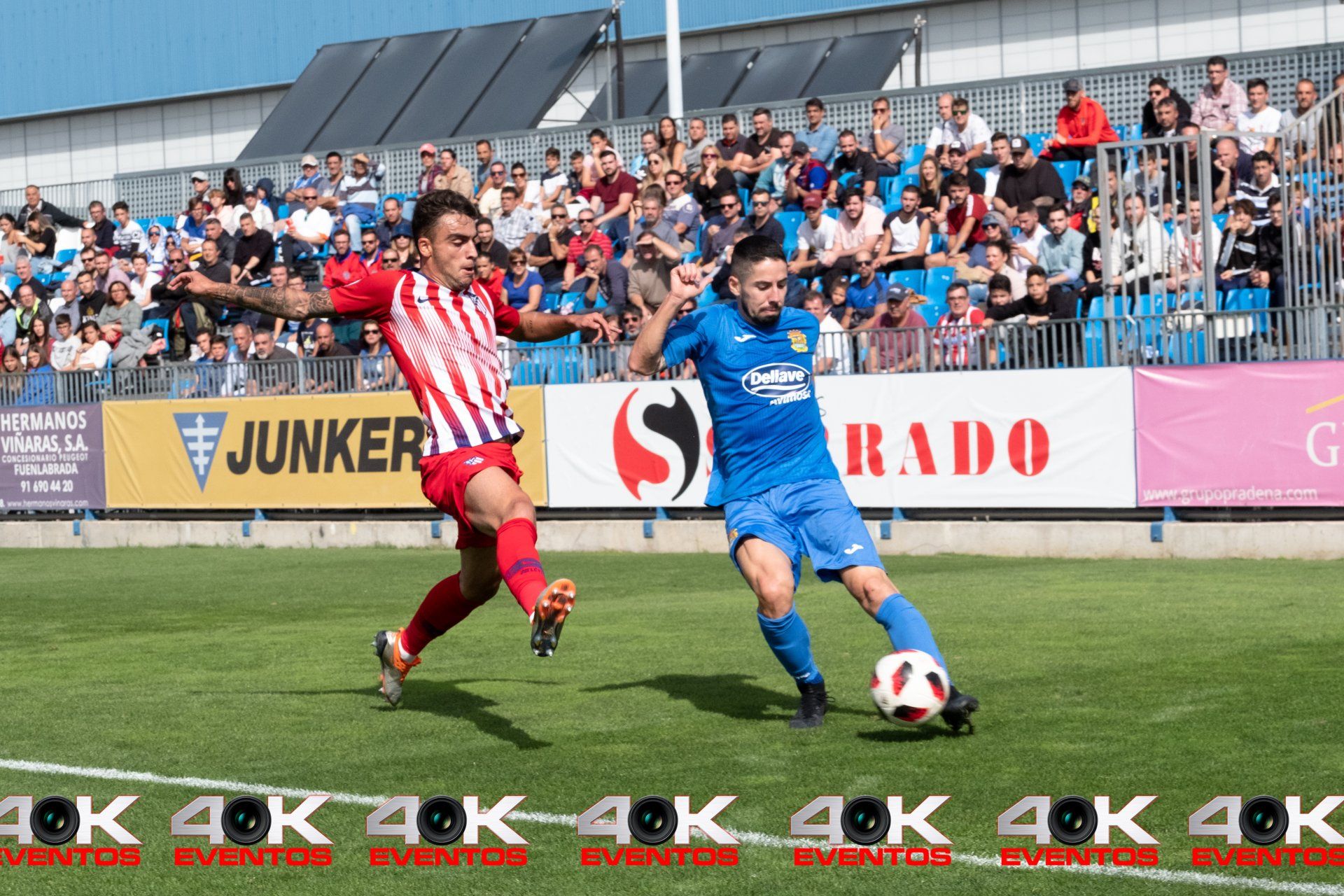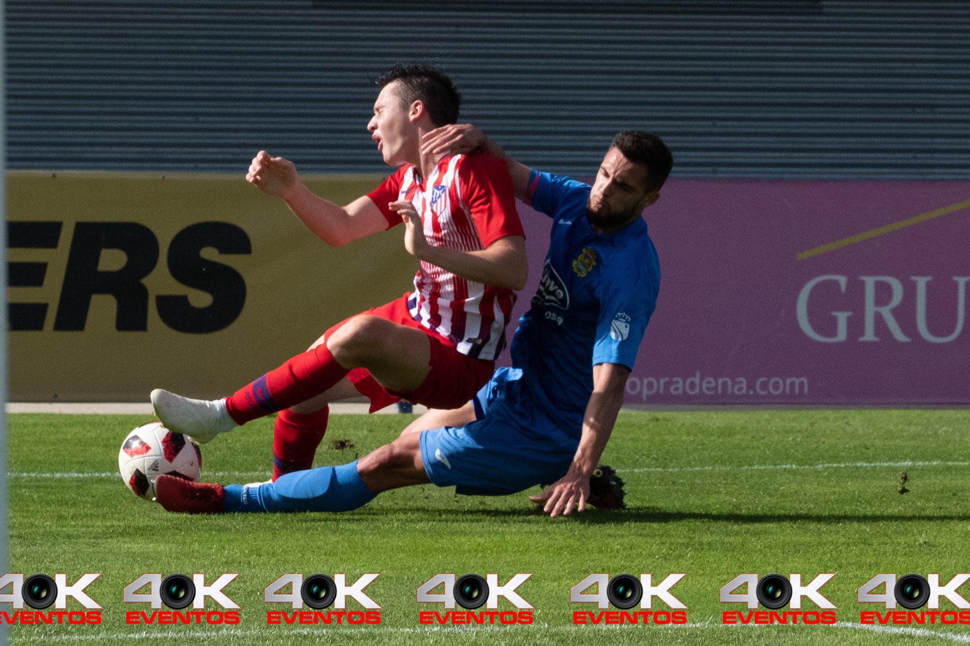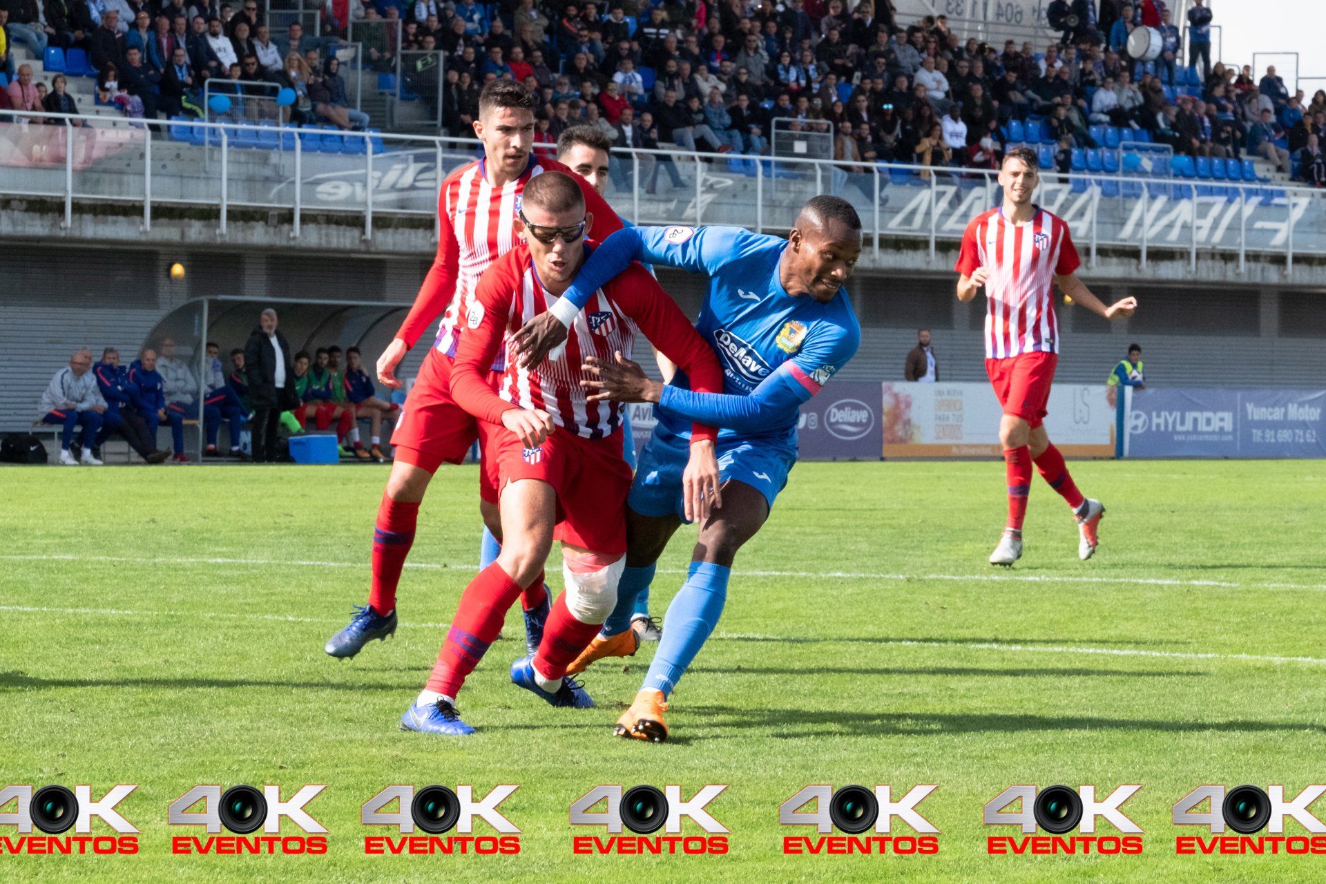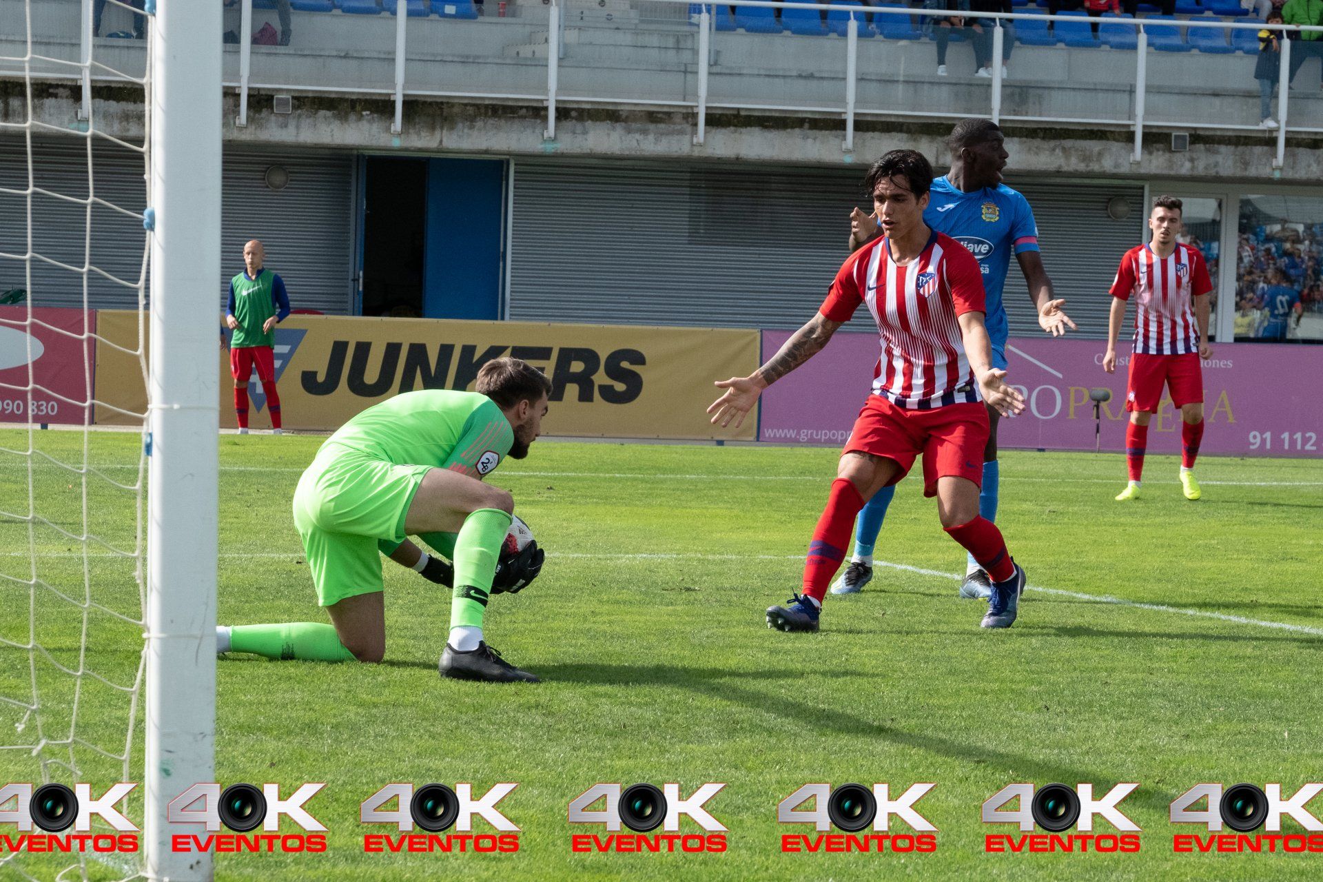 El partido empezó con una primera parte de pocas ocasiones, pero de muchas disputas. Se contó una oportunidad clara por bando. La del Atleti en un centro que se estrelló en el palo y la de la del Fuenla en un centro medido de Iribas que remató Borja Lázaro y paró San Román. El Fuenla vivía de la seguridad atrás. Cata volvió en versión imperial y Glauder entró en el once para jugar con seriedad y solvencia. Formaron un muro que se fortificaba con Biel atrás y Clavería, Cristóbal y Randy corriendo todo por delante para ayudar a Souley e Iribas en los laterales. El partido dormía plácido y cuadraba con los pocos sobresaltos de la semana, pero cuando se acercaba el descanso se dispararon los acontecimientos y, como sucede últimamente, lo hicieron contra los intereses del Fuenlabrada. Sucesos esotéricos que no minan la moral azul. Esta vez el caído en combate fue Javi Gómez, que acabó con la nariz fracturada tras un codazo de un rival. Llegó el descanso sin mucho más en el fútbol y con la grada pendiente del joven extremo.